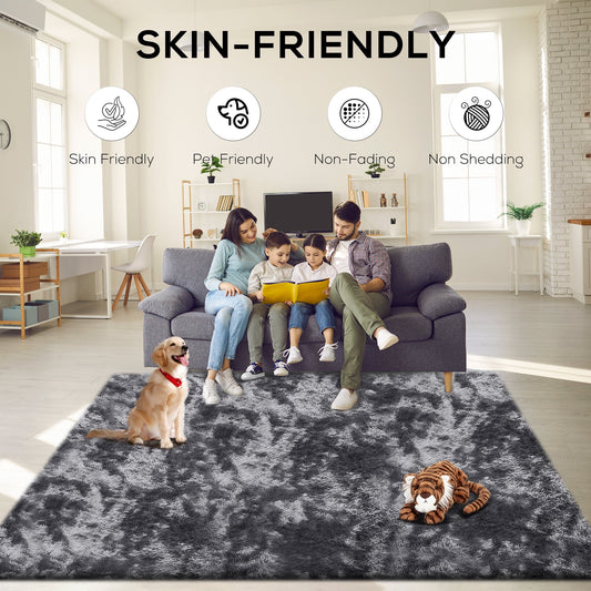 CozyDesg Soft Area Rugs for Living Room Bedroom,Large Rug Fluffy Fuzzy Shag Shaggy Soft Plush Carpet,Indoor Floor Carpet for Dining Room Home Decor,Dark Gray & Black