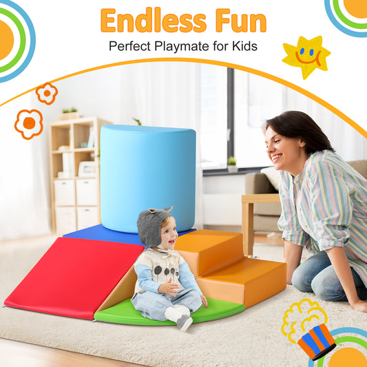 Lookfly 5-Piece Soft PU Leather Toddlers Climbing Toys,Play Set Indoor Baby Climbing Toysclimbing Foam Blocks for 1-3
