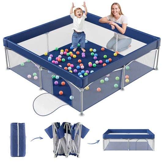 babyeap Baby Playpen,73 Inch Extra Large Baby Playard,Playpen for Babies and Toddlers With Basketball Hoop,Children Kids Play Fence for Indoors Outdoors,Gray