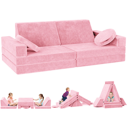 LOOKFLY 10 PCS Customizable Kids Play Foam Couch, Multifunctional Modular Sofa Couch,Kids Toddler Couch,Convertible Foam and Floor Cushion for Boys and Girls,Gray