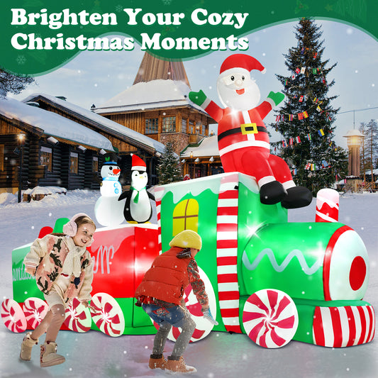 Yexmas 10.5ft Christmas Inflatable Train with Santa Snowman Penguin Dinosaur Corner Outdoor Lights Decorations for Holiday Decorations, Christmas Parties, Yard, Garden and Lawn