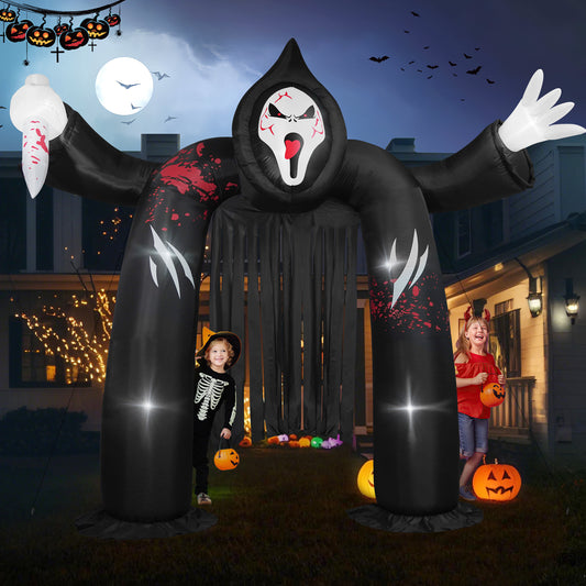 Yexmas 10FT Halloween Inflatable Archway Outdoor Decoration,Ghost Castle Inflatable Archway Blow Up with Spooky Face Scary and Build-in LED, Large Halloween Decor for Party Yard Garden Lawn