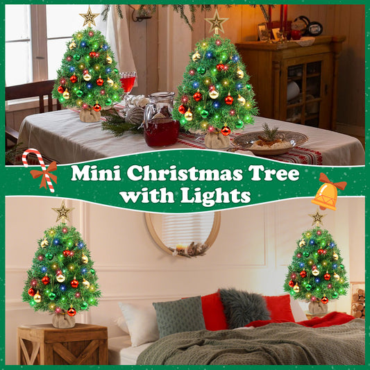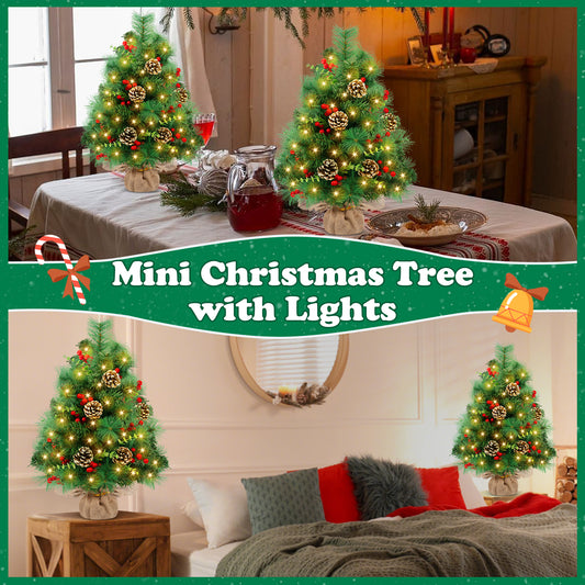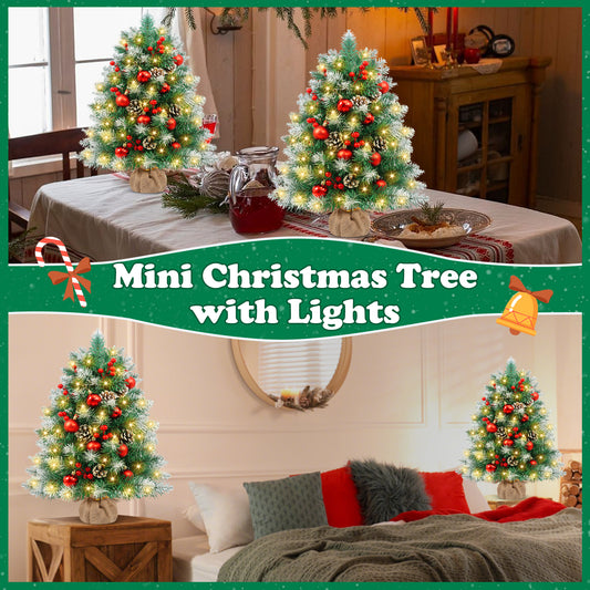 Yexmas 2PCS Pre-lit Artificial Mini Christmas Tree,24 Inch Small Tabletop Xmas Tree for Indoor Outdoor Christmas Decor