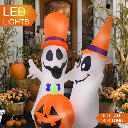 Yexmas 6 FT Halloween Inflatables, Pumpkin and Ghost, Halloween Outdoor Decoration with Built-in LED Lights, Blow Up Halloween Decoration for Yard, Lawn, Garden Décor