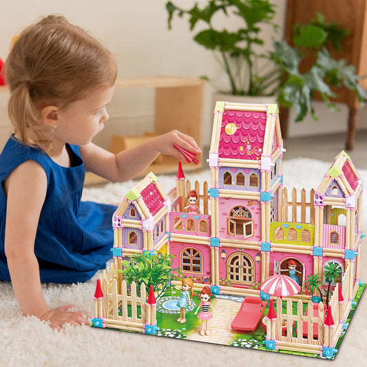 Yexmas 3D Wooden Castle Dollhouse Doll House Puzzles Kit for Kids Ages 6+ Boys & Girl Toy Building Sets- Playset Toy Figures & House playsets Miniature House kit-Playhouse Building Toys