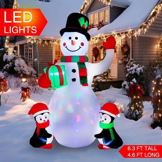 Yexmas 6.3FT Christmas Inflatable Snowman with Penguins Gift Box, Blowup Christmas Decoration with LED Lights for Holiday/Party/Xmas/Yard/Garden Decorations