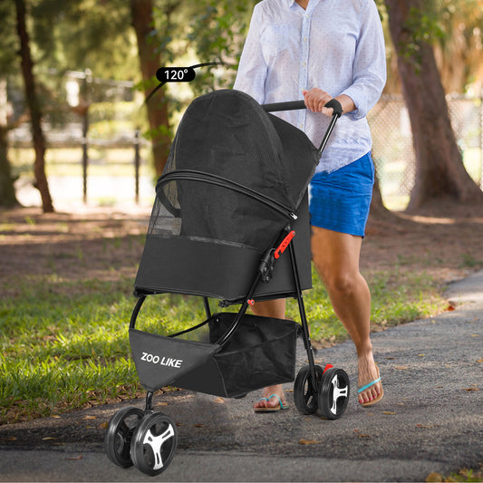 Zoolike 3 Wheel Pet Stroller Cat Dog Stroller Foldable Jogging Travel Perros Carrier for Small Medium Dogs,Puppy Stroller,Black