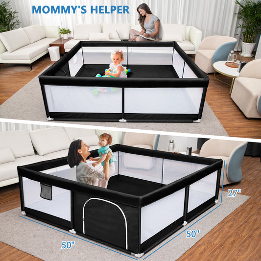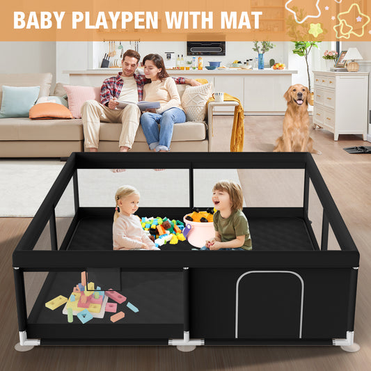 Babyeap Baby Playpen Large Play Yard Fence With Mat for Toddlers, 50"x50" Black