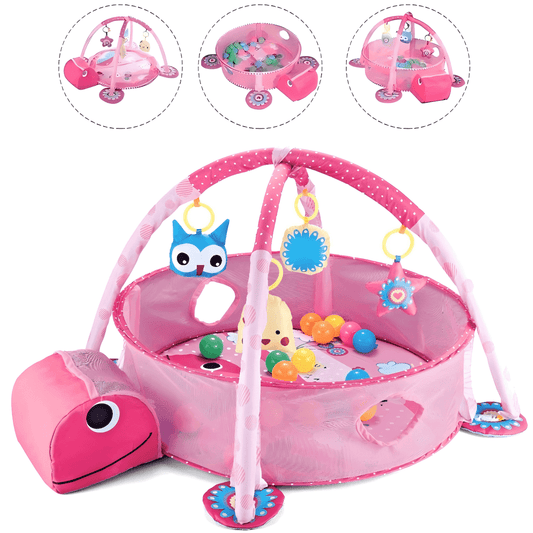Babyeap 3 in 1 Baby Gym Play Mat Baby Activity with Ocean Ball,Green Turtle