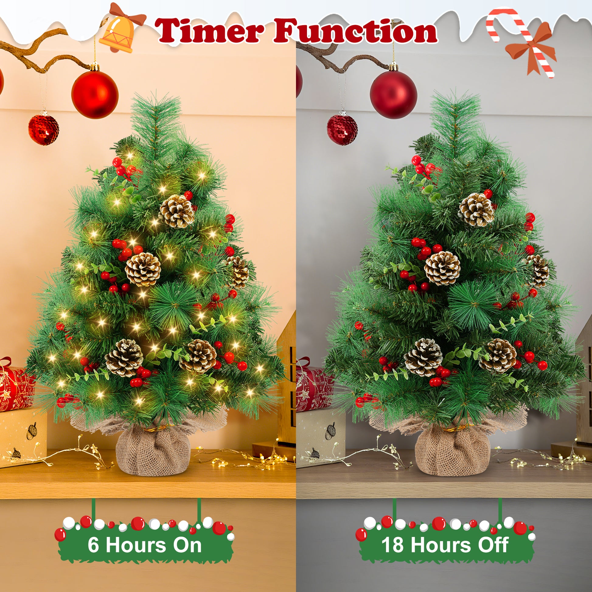 🎄🎄Yexmas mini Christmas tree skillfully combines PVC, pine needles, and PE materials, creating well-layered branches with a natural and realistic texture. This table top Christmas tree comes pre-decorated with exquisite pine cones and red balls, adding a rich festive atmosphere. Equipped with 8 adjustable lighting modes, small christmas tree meets the needs of various settings, creating a warm and diverse holiday lighting effect, making it an ideal choice for setting the festive mood.