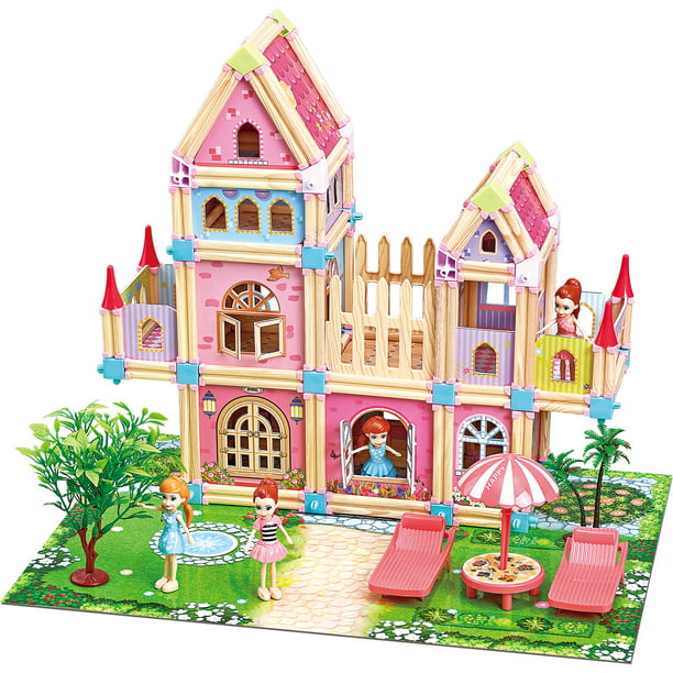 Yexmas 3D Wooden Castle Dollhouse Doll House Puzzles Kit for Kids Ages 6+ Boys & Girl Toy Building Sets- Playset Toy Figures & House playsets Miniature House kit-Playhouse Building Toys