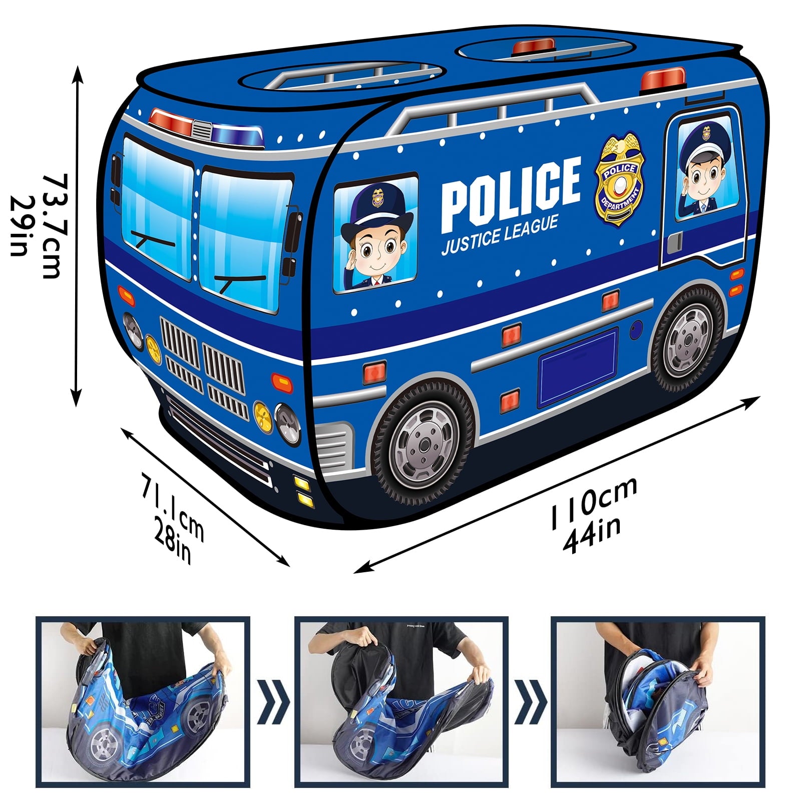 - ❤️【GREAT GIFT IDEA】Birthday, holiday, or anything in between, this police playhouse makes a memorable treat. For impressive durability, we’ve used high-quality materials that withstand all that enthusiastic play. Also great as a game prize. For kids ages 3+