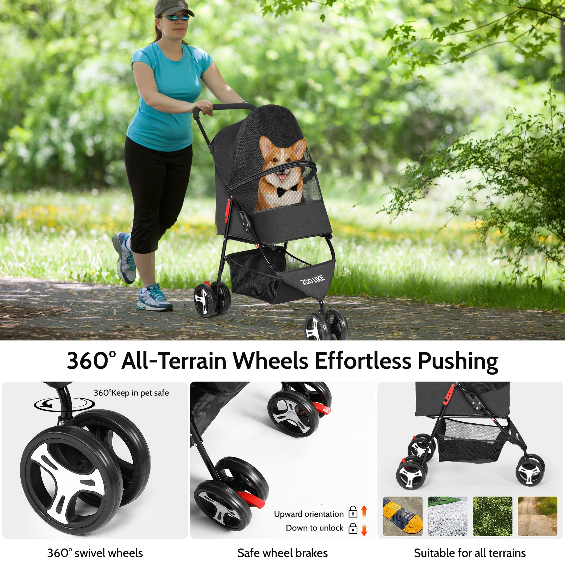Zoolike 3 Wheel Pet Stroller Cat Dog Stroller Foldable Jogging Travel Perros Carrier for Small Medium Dogs,Puppy Stroller,Black