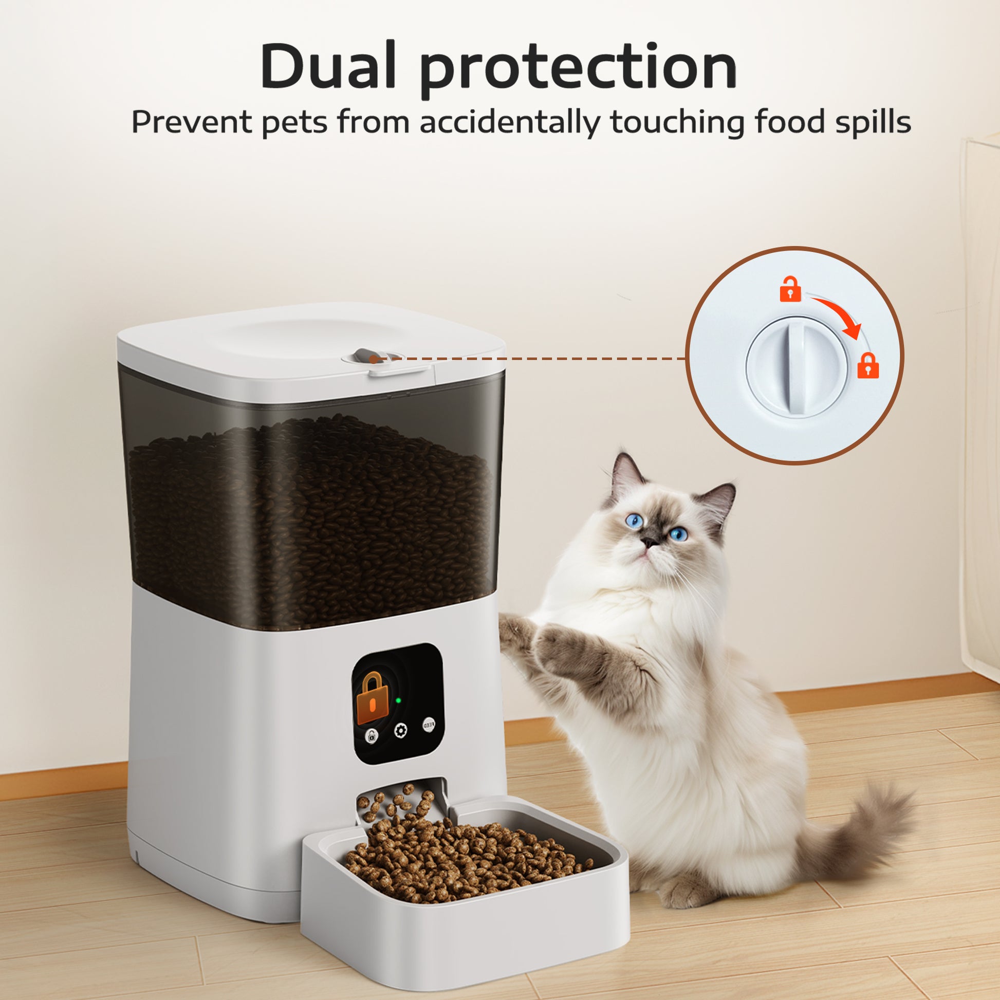 Anti-mistouch design: There is a lid on the top of the pet feeder, and a lock key function is set to prevent pets from pressing the button to feed themselves. Just turn it to lock it safely to prevent your pet from overeating.