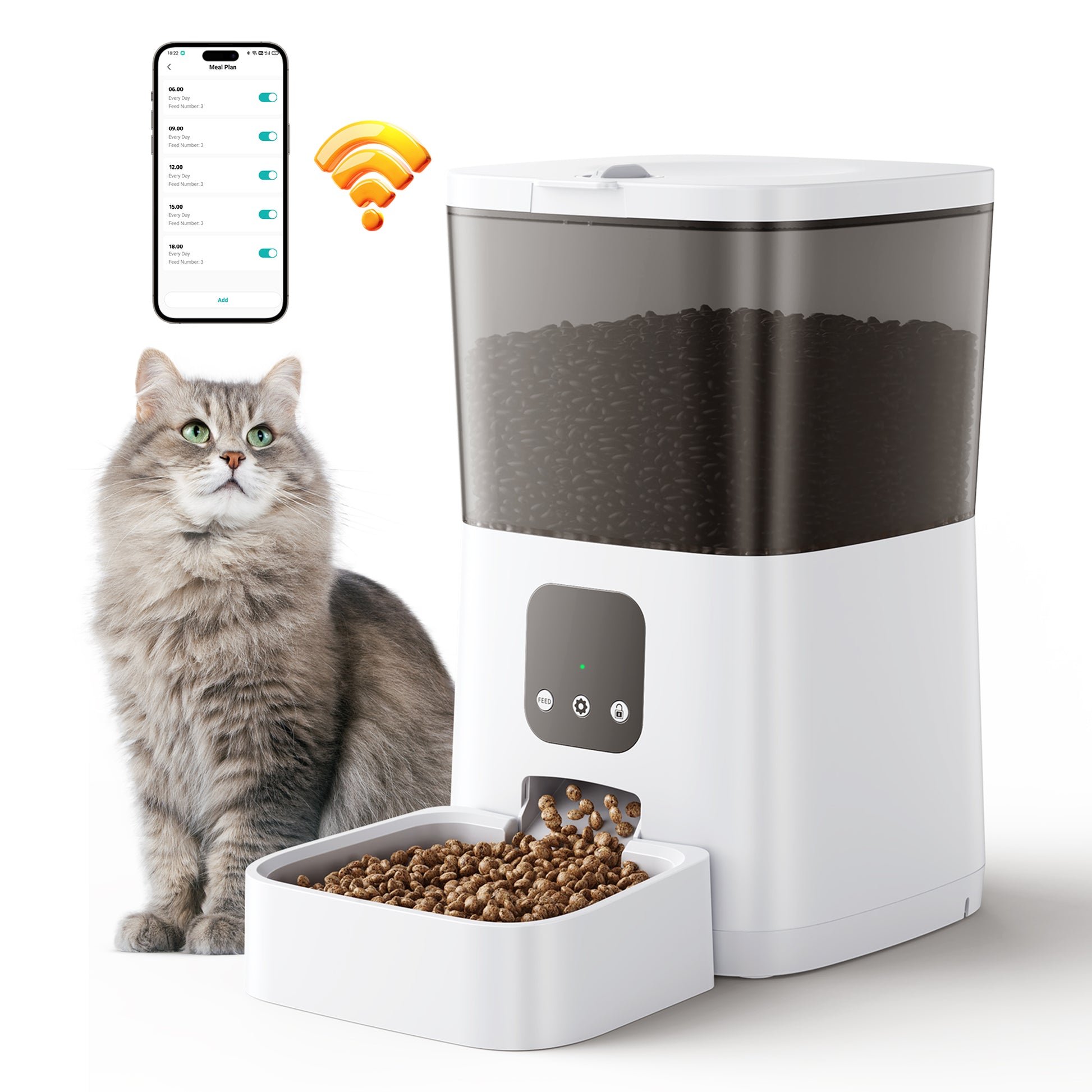 Comprehensive smart experience:Our WiFi automatic cat feeder App has an operation video guide and online customer service replies to meet all your needs. In addition, when the food is blocked (the motor does not turn), the App pushes device abnormality. So that you can feed your pet at any time. Provide an interesting life for your pet!